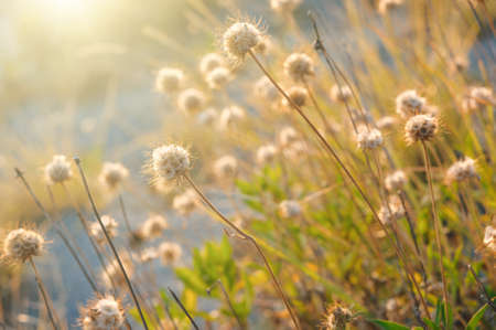 Beautiful natural background of grass flower with sunset. Vintage and Seasonal concept.