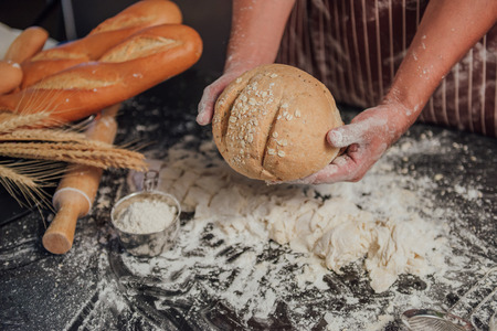 bakers hands on fresh bread