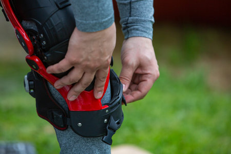 man puts protection on his knees forMotorsport