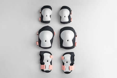 Protectors for knees and elbows on white background