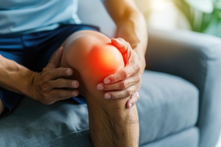 Painful Rest: Man Experiencing Knee Discomfort Seated