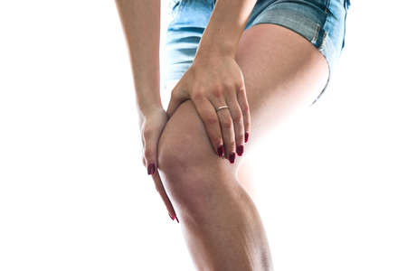 Acute pain in the knee. Close-up of a young woman suffering from pain in the knee.