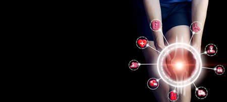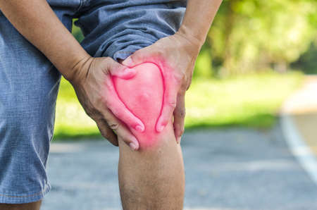 People with knee pain and feeling bad hand on he knee, healthy concept.