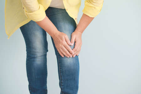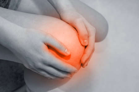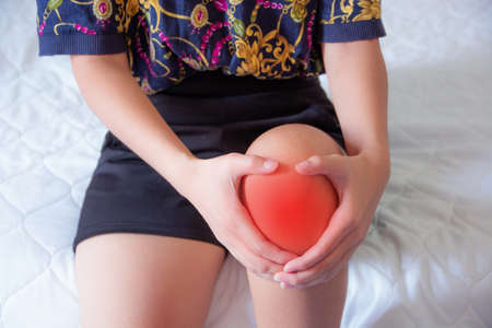 Close up on women suffering knee joint pain
