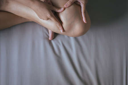 Woman with legs having knee or leg pain,Female feeling exhausted and painful
