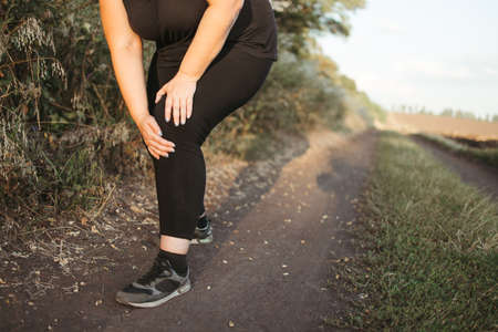 Woman got a knee trauma at outdoor jogging