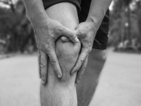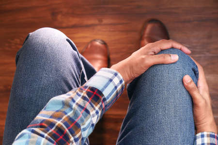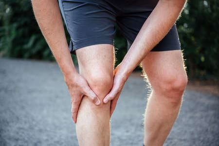 Close up on man suffering knee joint pain