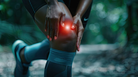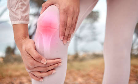 Female runner knee injury and pain, Outdoor exercise activities concept