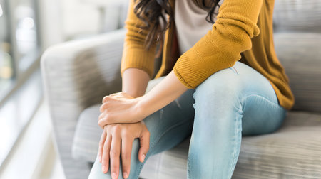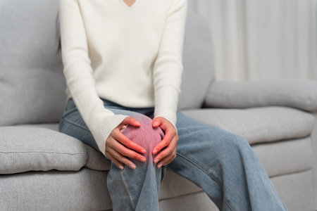woman having knee injury due to ligament inflammation, knee pain due to exercise, massage, muscle relaxation, rheumatoid arthritis, gait disturbance, rheumatoid arthritis