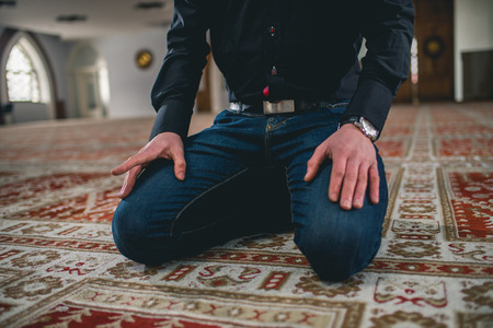 Businessman Muslim Making Traditional Prayer To God Allah In The Mosque
