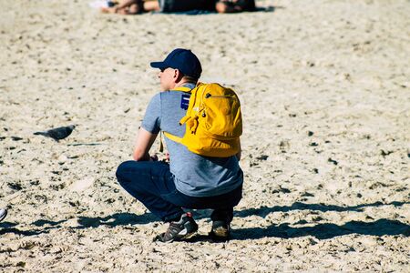 Tel Aviv Israel December 22, 2019 View of unidentified people having fun on the beach of Tel Aviv in the afternoon