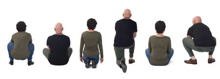 group of couple sitting on floor on white background