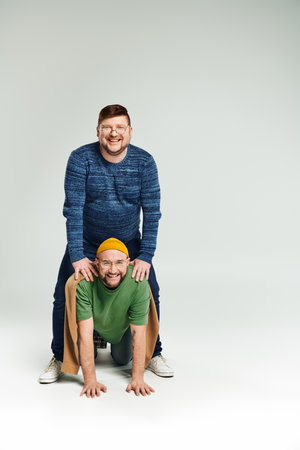 Two men engaging in playful acrobatics.