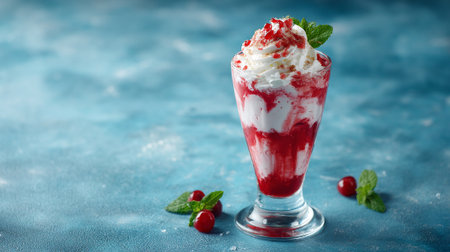 A vibrant dessert cup showcasing layers of cream, fruit, and a colorful blend of flavors. Perfect for summer events, food photography, or culinary inspiration.