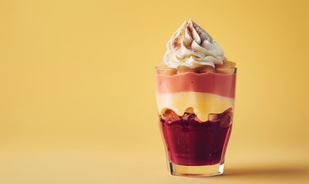 AI Generated. A layered dessert drink with whipped cream and yellow topping