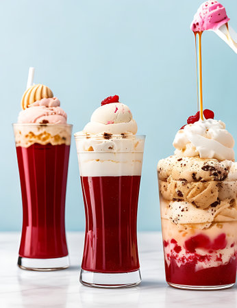 A 1950s styles ice cream float, 3 flavors, food photography, AI Generative Illustration Graphic Design Art Icon Symbol Sign Logo