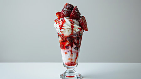 strawberry sundae with fresh berries and syrup drizzle