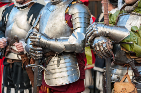Medieval armor in a medieval castle, closeup of photo.
