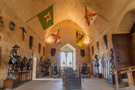 SEGOVIA, SPAIN - OCTOBER 20, 2017: Interior of Alcazar fortress with medieval armors in Segovia, Spain