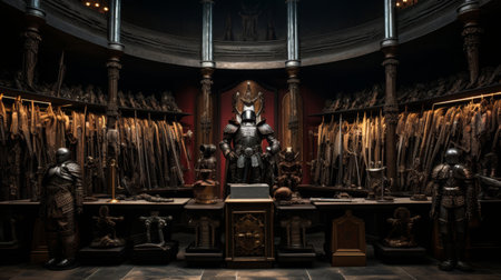 Armory in the Roman coliseum displaying a dazzling array of weapons and armor