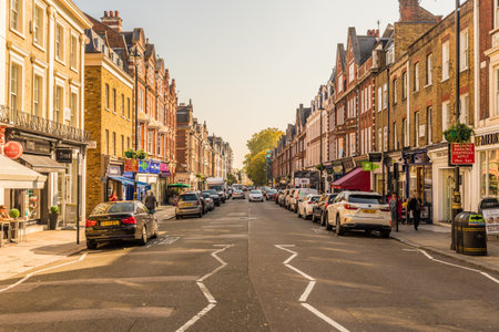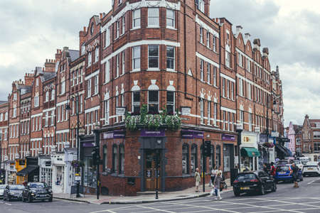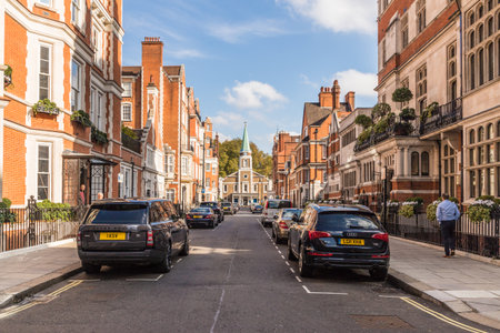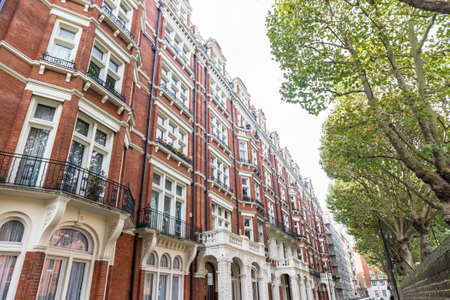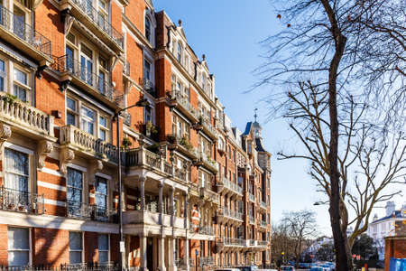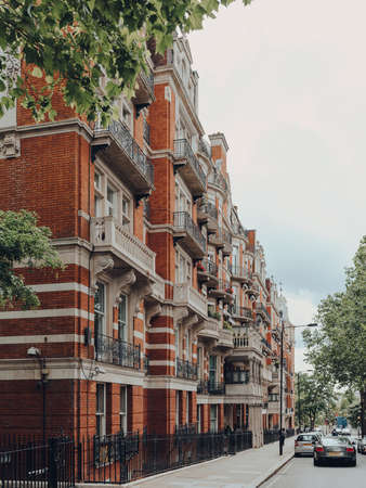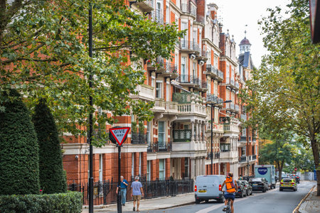 London, UK - 9 September, 2023: Beautiful periodic building of Kensington, one of the richest areas to live with fancy lifestyle. Street photography