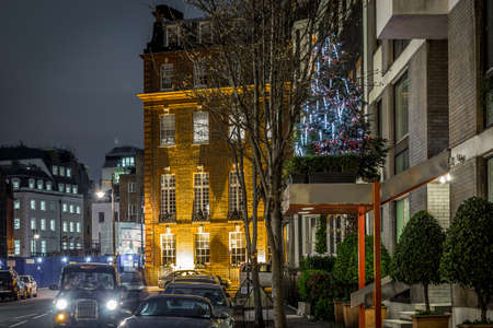 London, United Kingdom - January 3, 2018: Street of old classic buildings with cars parked and people around in London, England, United Kingdom