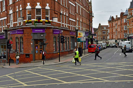 London, UK - August 20, 2020: People on a street in Crouch End, an area in North London traditionally favoured by creatives and families, on a summer day.