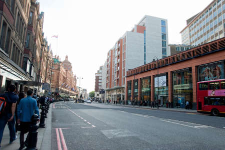 London, UK - August 19, 2015: Knightsbridge is an exclusive residential and retail district in central London, is home to many expensive shops, fashion houses and luxury apartments