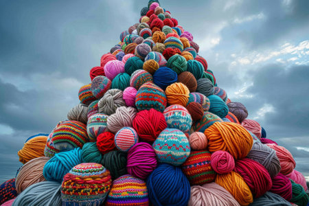 Brightly colored yarn balls in shades of orange and blue stacked in a grid pattern, showcasing their vibrant and textured knit. perfect for hobbyists and knitting enthusiasts seeking inspiration for crafting and design projects. Generative AI