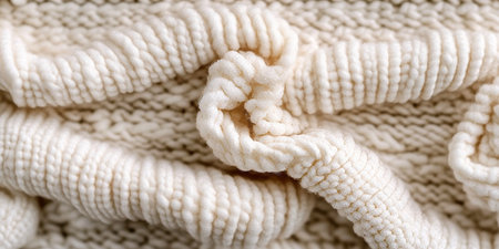 Cozy Cream Knitted Textiles Texture, Close-Up of Warm Wool Fabric with Intricate Patterns