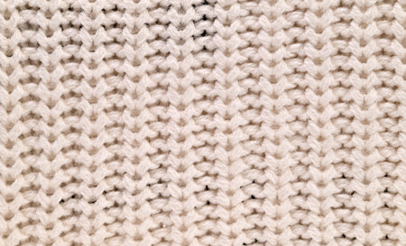 A close-up shot highlighting the intricate texture of a beige knitted woolen fabric.