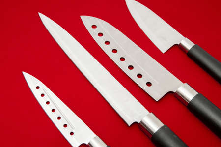 kitchen knives on a red background