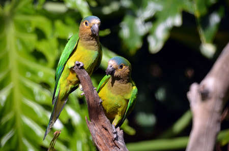 Magnificent bright multi-colored tropical bird sitting on a tree branch