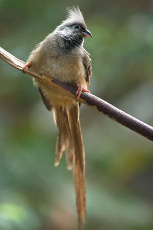 beautiful small bird Speckled mousebird, (Colius striatus) feeding on tree with berries. Gondar, Ethiopia wildlife