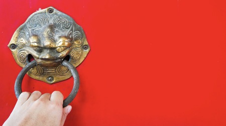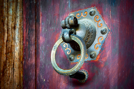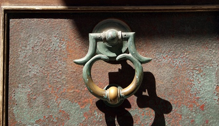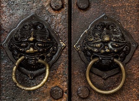 closeup of the antique oriental door knocker