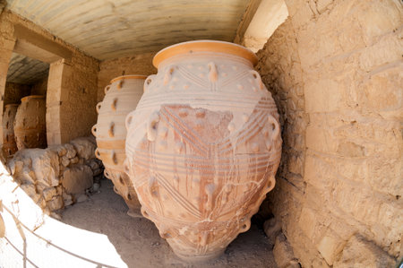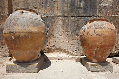 Ceramic pots in Phaestos city ruins in Crete. Greece. Horizontal