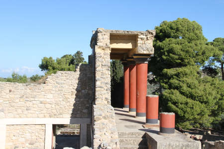 Reconstructed building in the archaeological site of Knossus on the island of Crete (Greece)
