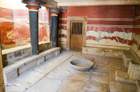 Crete, Greece. The ruins of Lustral Basin in the largest Bronze Age archaeological site of Knossos, Minoan civilization.