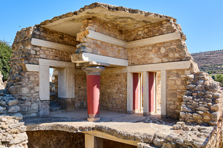 Scenic ruins of the Minoan Palace of Knossos on Crete, Greece