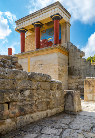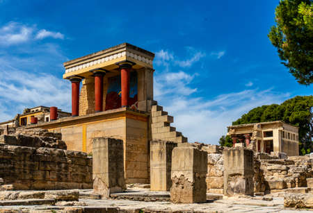 Knossos ruins, ceremonial and political centre of the tsar Minos. Archaeological site connected with legends of Daedalus, Minotaur, Ariadne and Icarus