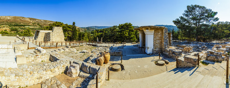 panorama of the ruins of the Palace of Knossos on the island of Crete, Greece