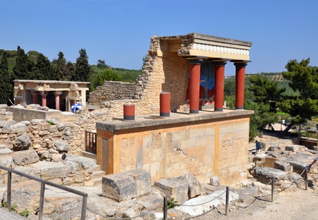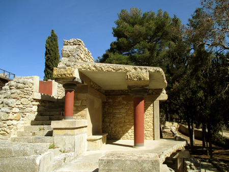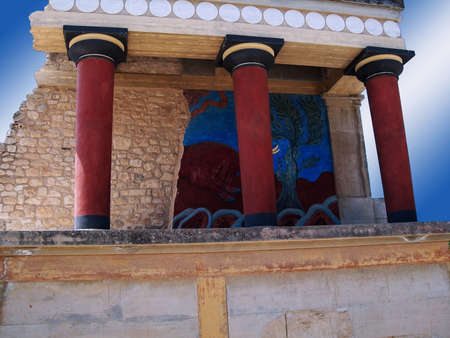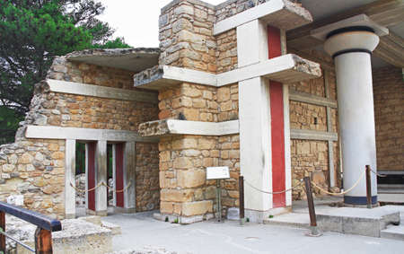 Reconstructed building in the archaeological site of Knossus on the island of Crete (Greece)