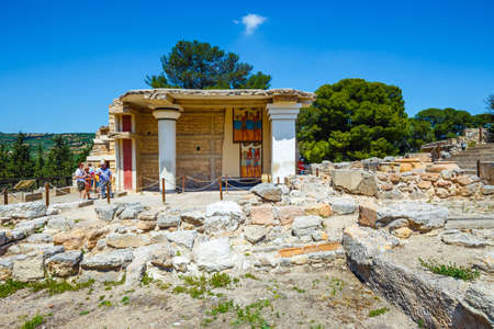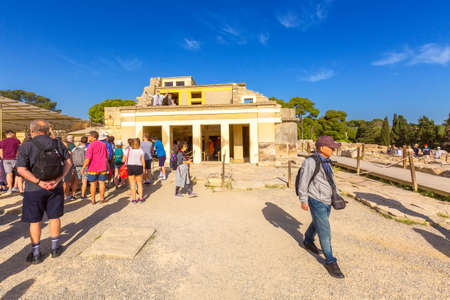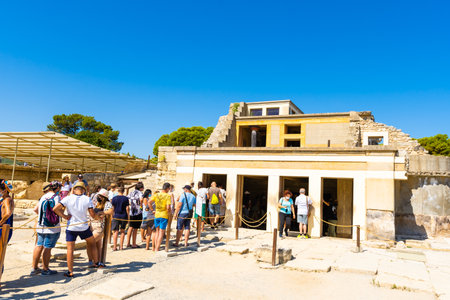 Knossos, Crete, June 10, 2017: unknown people visit ancient ruins of famous Minoan palace of Knossos, Crete Island, greece
