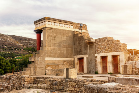 Scenic ruins of the Minoan Palace of Knossos on Crete, Greece