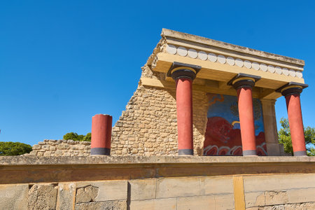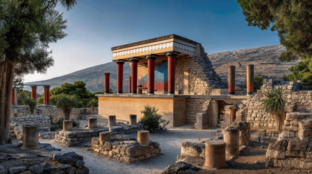 Knossos palace in Crete, Greece a captivating Minoan ruin enriched with timeless art, history and cultural heritage, perfect for travel, education and creative projects.