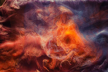 Abstract background of acrylic paints in orange and blue color tones