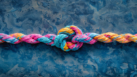 Brightly Colored Ropes Knotted Together Against a Vibrant Background