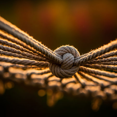 A detailed close-up of a knot in a rope, with a soft bokeh background creating a sense of depth and texture