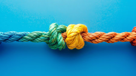 Brightly Colored Ropes Knotted Together Against a Vibrant Background