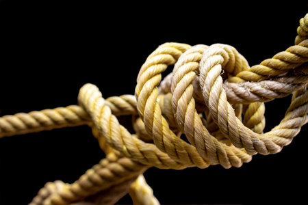 close-up of knotted rope on black background